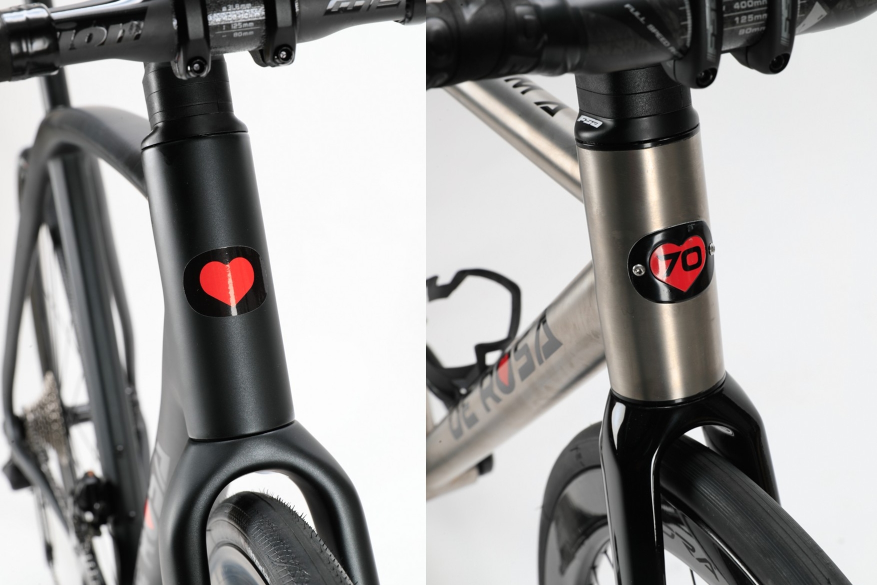 金属フレームハイエンドのANIMAは、「DE ROSAと言えばチタン」を代表するモデル。DE ROSAがつくり続けてきたチタンフレームのノウハウすべてを注ぎ込んで生み出されています。カラーリングもみなさまがイメージする「チタン」そのもの。期待を裏切らない仕上がりです。